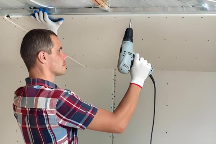 Ceiling work is one place where beginners often use too few screws. The sheet may look fine at first, but later it can bow between framing members. That is much harder to fix after taping and painting.